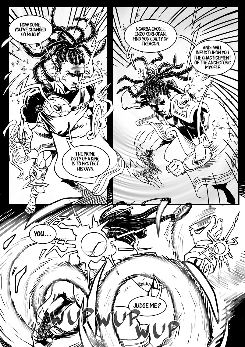Enzo Kori-Odan, prince of Zama city suffers a coup d’état conspired by his brother-in-law Ngarba Evou on his coronation and wedding day with Erine Evou. Exiled in shame, the royal couple travels the world, gain strength, and assemble their Aurionic Legacy, in hopes to return to Zama and claim what was taken from them.