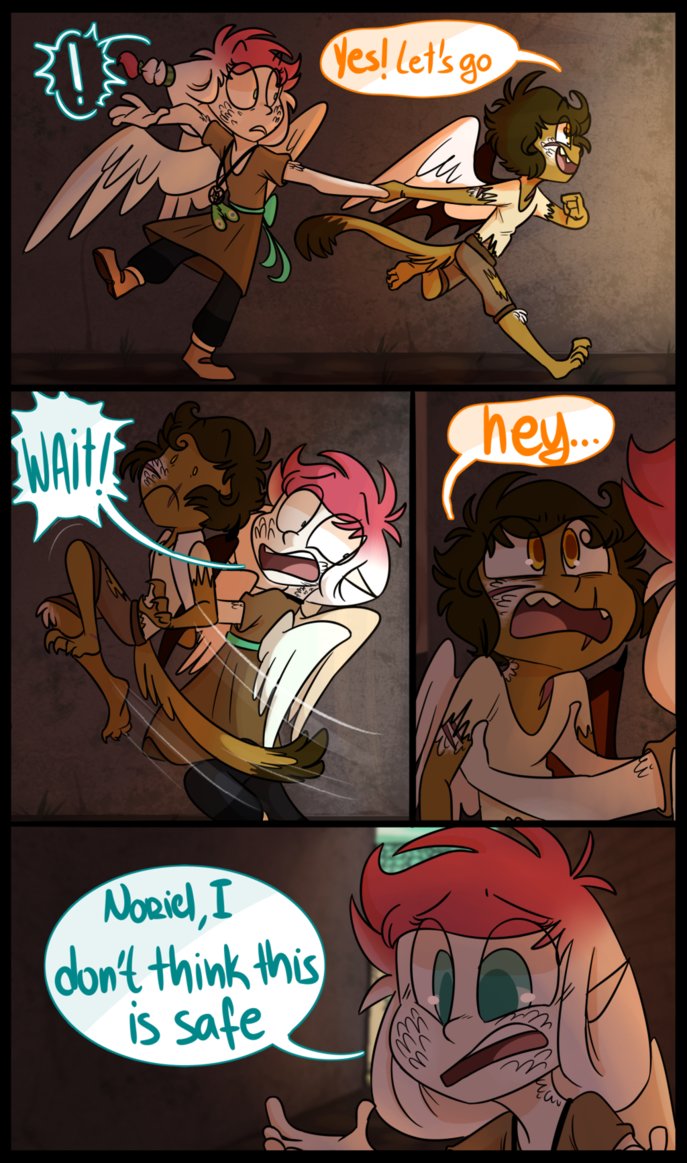 in summary: Noriel convinces Kana to let her out and guide her somewhere. In the way, Noriel comes across a place full of people she now has to go through