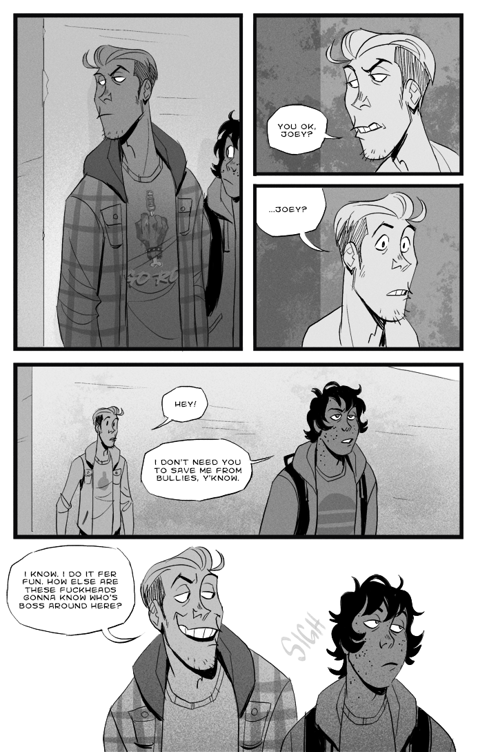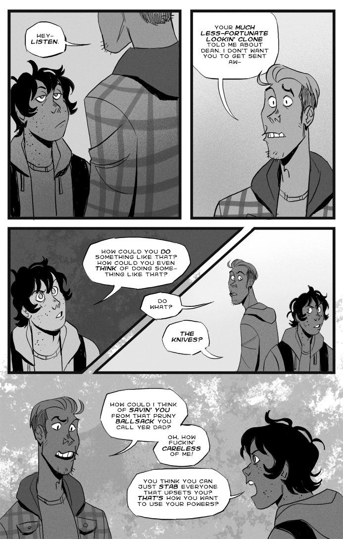 Long Exposure is a completed webcomic about a nerd and a bully who are forced to work on a class project together. The story revolves around them developing super powers after an incident at a strange research center, and finding themselves followed by a mysterious car, overcoming personal challenges, and (most importantly) discovering how gay they are for each other.