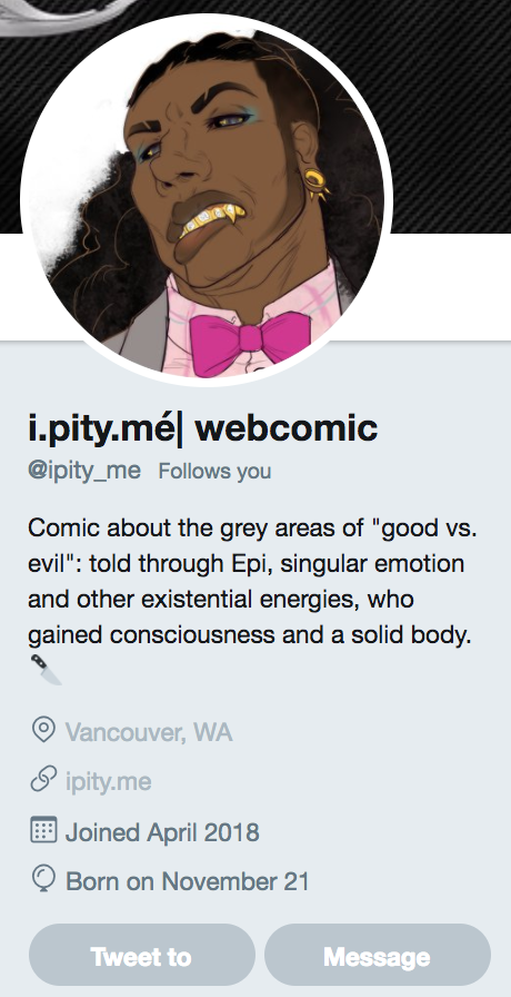 Please follow there, or subscribe to http://ipity.me directly , instead of subscribing to this Tapas: as here is little more than a billboard for the comic :)