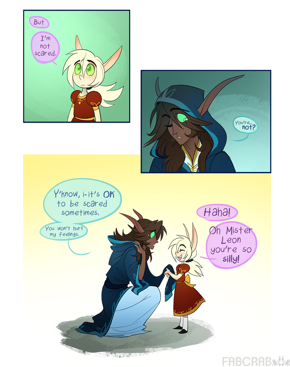 There is only one problem: he's terrified his injury will scare her away. Sig convinces him to at least come to the orphanage, but Leon insists on watching the fun from afar. He would never forgive himself for scaring a child, especially dear Salandria.