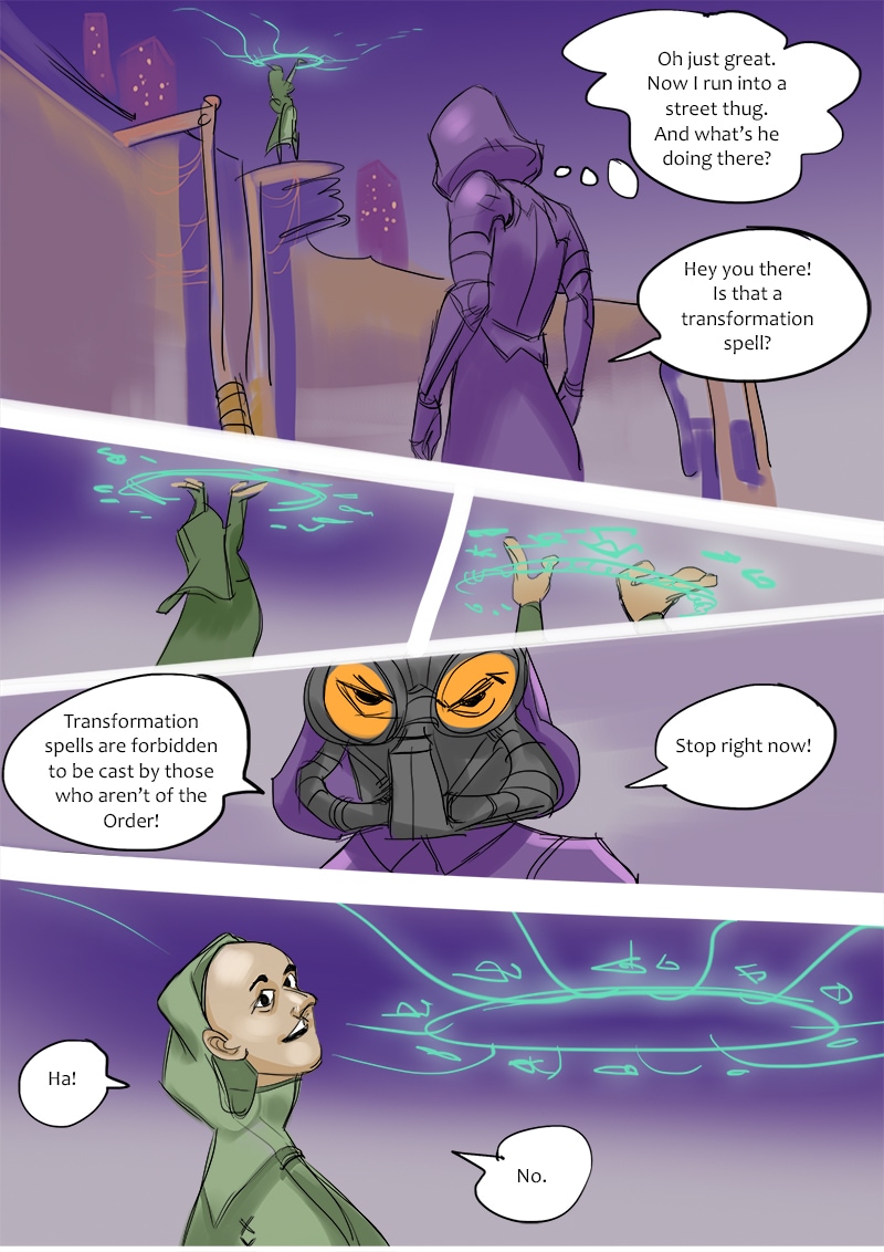 Magitech insanity; a masked protagonist called 333lom runs into an organization of runaway mages. After realizing that they are somehow connected to the strange reality jitter in the city, 333lom and another mage called Trigger are in a race against time to stop them with the help of the Order of Wizards. An original comic, its experimental nature might be its biggest characteristic.