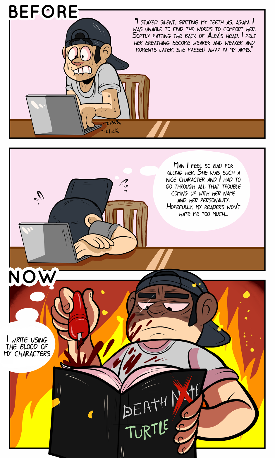 In another dimension, writers might be categorized as mass murders. Thank you so much, F, for your awesome work on this collaboration. Check out more of his stuff at https://tapas.io/spooktacularprize