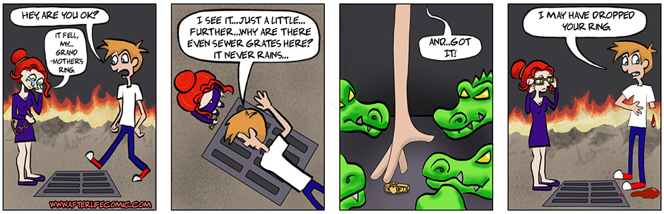 hanks for checking out our comic! After Life is a comic strip about Albert, a man that has been in Hell for a very long time. He learns the sad truth that there is no Heaven! Everyone spends eternity, after they die on earth, in Hell.