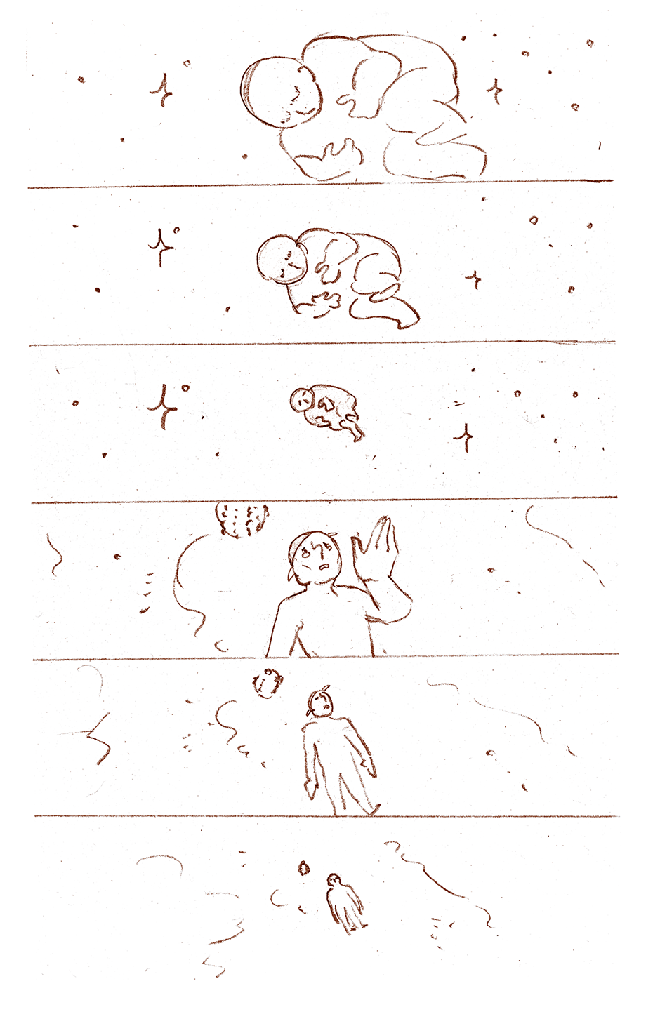 These are sketch pages, not final product, so my apologies for the handwriting. I made these pages so I could let people proof read my stories more easily, both visually and in content. If there are any question, don't hesitate to ask!
