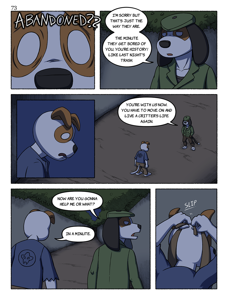 In The Lion's Den takes place in an alternate Earth where anthropomorphic animals called “critters”, coexist with the primitive “Giants”. The Critters live in a land of their own, forming social groups and often gangs due to conflicts between one kin to another. Many of the Critters also venture out into The Land of the Giants, reasons for this ranging from opportunism, to feeling isolated from their own kind, or simply out of curiosity. Subsequently, many end up forming special bonds with The Giants.