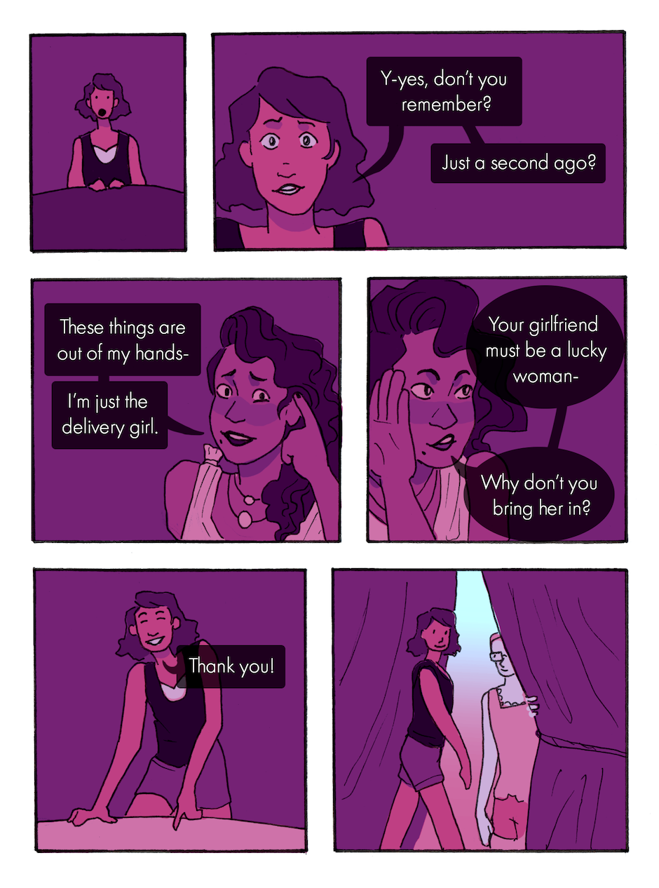 I worry for her girlfriend. Lovely comic so far! I think the missing arm is a nice character touch, and a uncommon way to make a unique charscter that I really like
