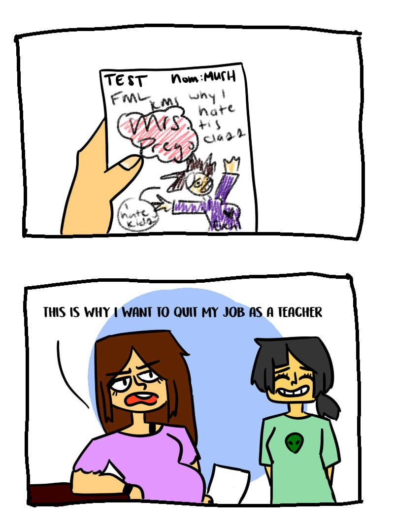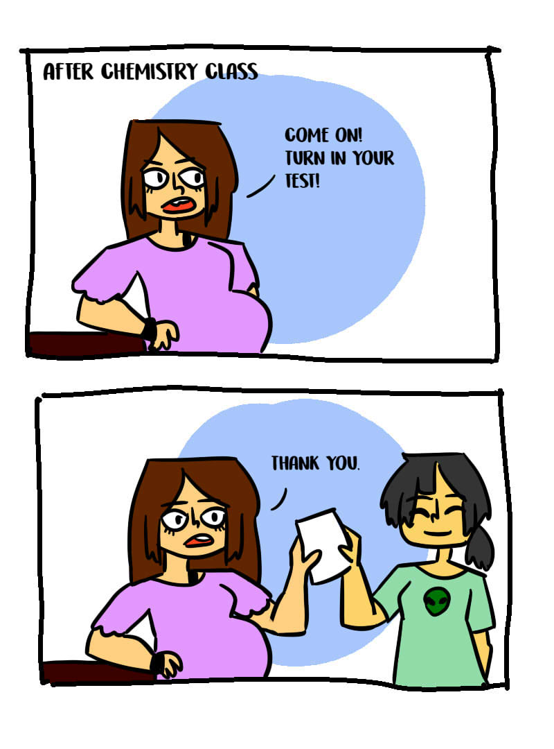 This usually happens during Chemistry class. Where I struggled to answer the questions because of how specific I have to be. So instead...I just draw and turn it In.