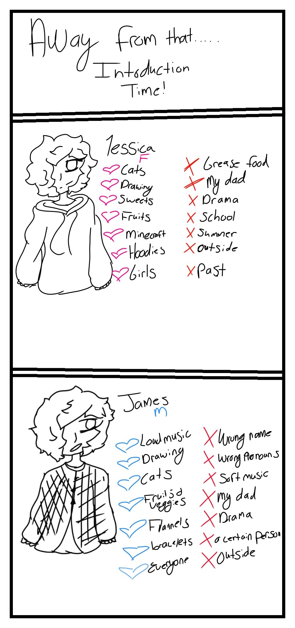 Jessica and James...one female, and one male (I can not draw males, so shush)