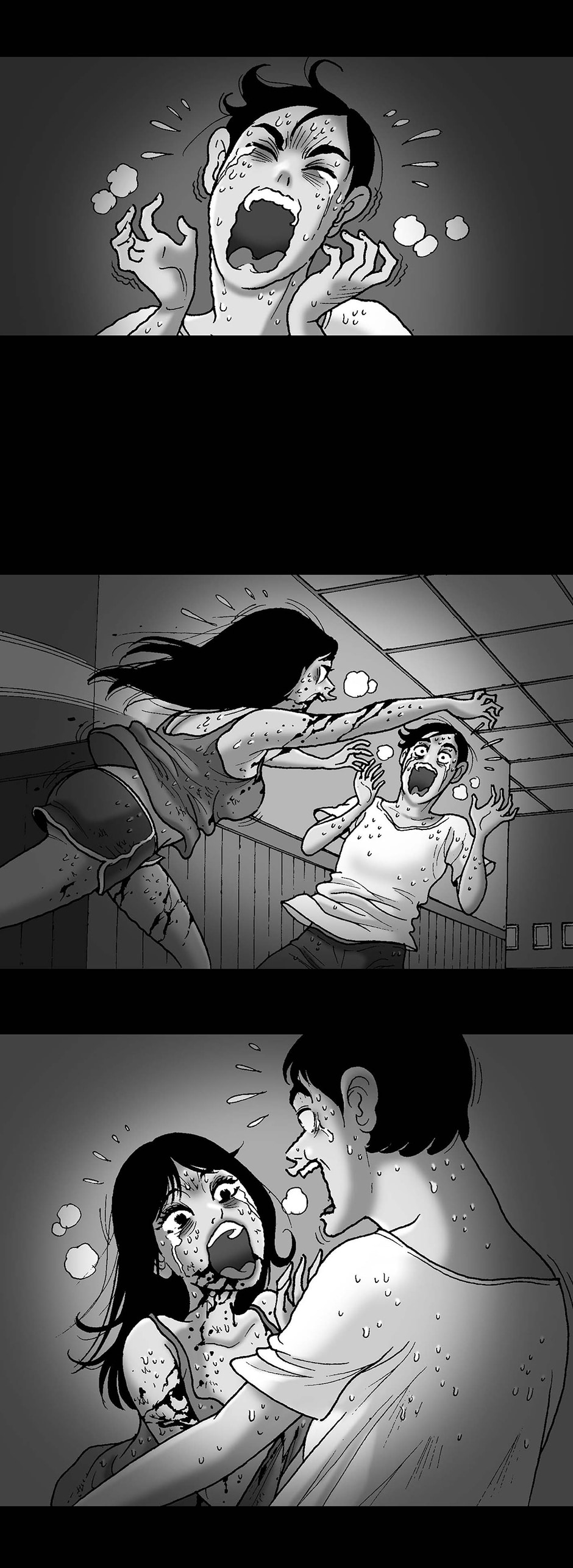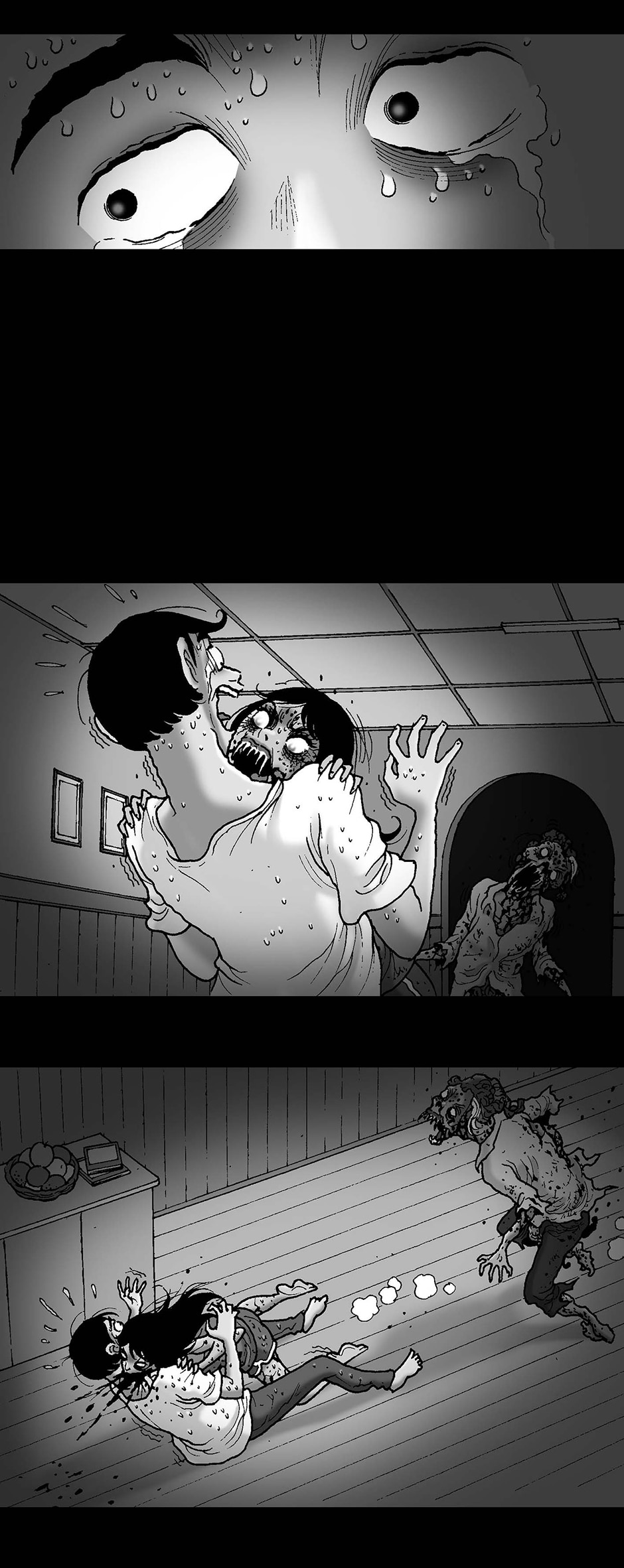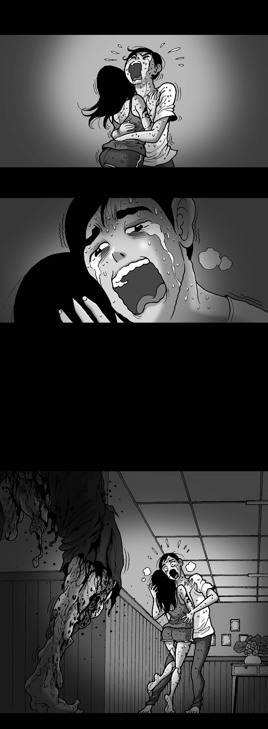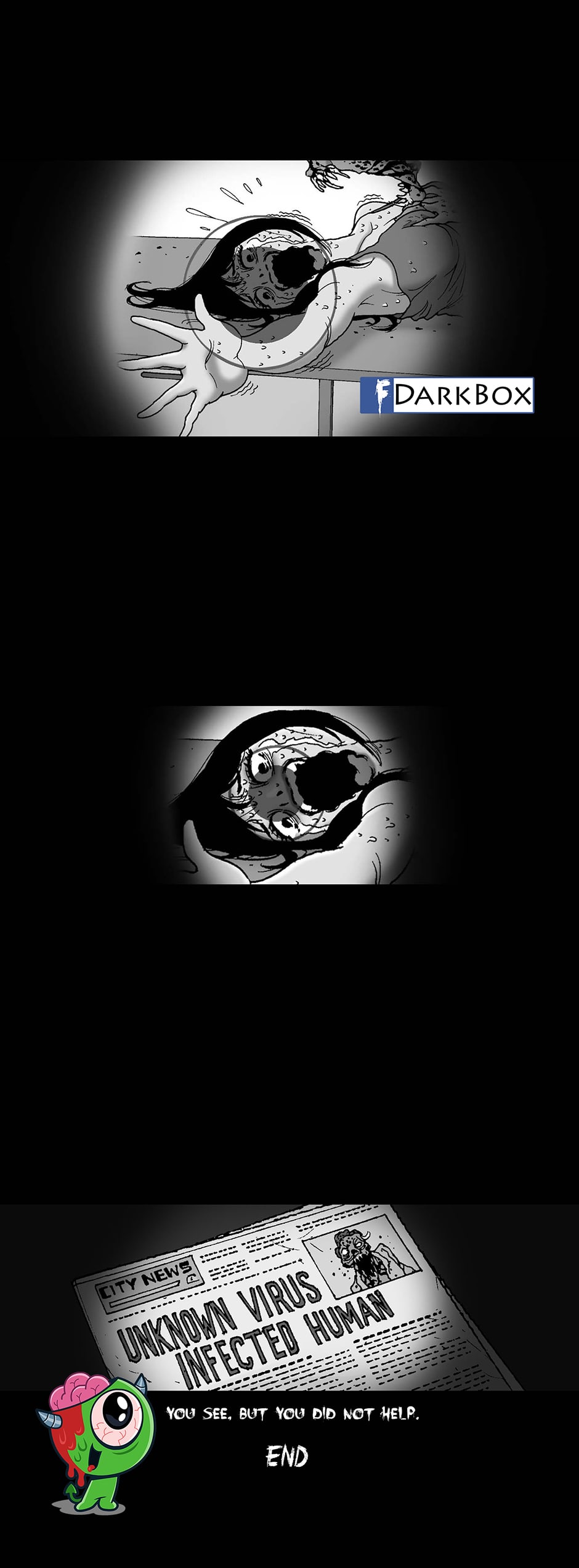 oh I get it...it's zombie revenge...he didn't help her when she was being attacked so when she became a zombie she went after his butt for a quick bite ^^