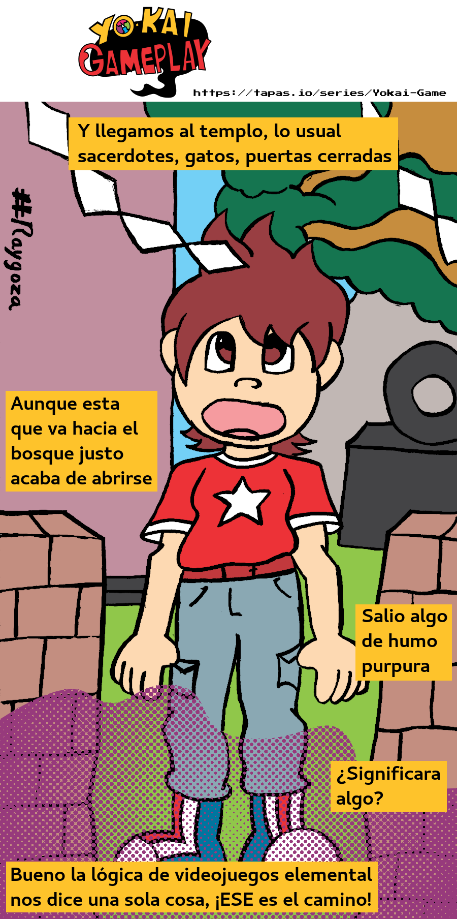 Llegamos al templo y extrañamente una puerta se abrió tras una mini explosión de humo purpura, la lógica de videojuegos elemental nos dice una sola cosa, ¡ESE es el camino!.