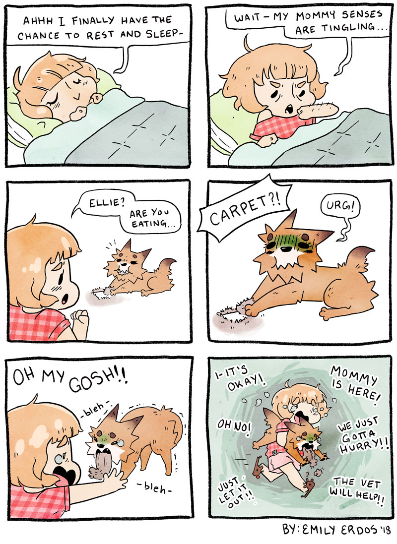 Ellie indulges in a very late night snack. I know this is two weeks late! I'm so sorry! Ellie got very sick and was diagnosed with an auto immune disease - no worries! She's on medication and doing much better! This comic is the first part is how all of this hullabaloo started!