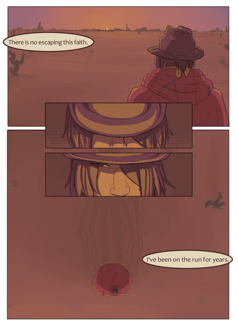 Crossfire is an ongoing comic about- to put it simply- cowboys and cults. The story revolves around a boy trying to get away from a widely known religious cult and the supernatural consequences of doing so. Belief is power. At least, it is in this world.