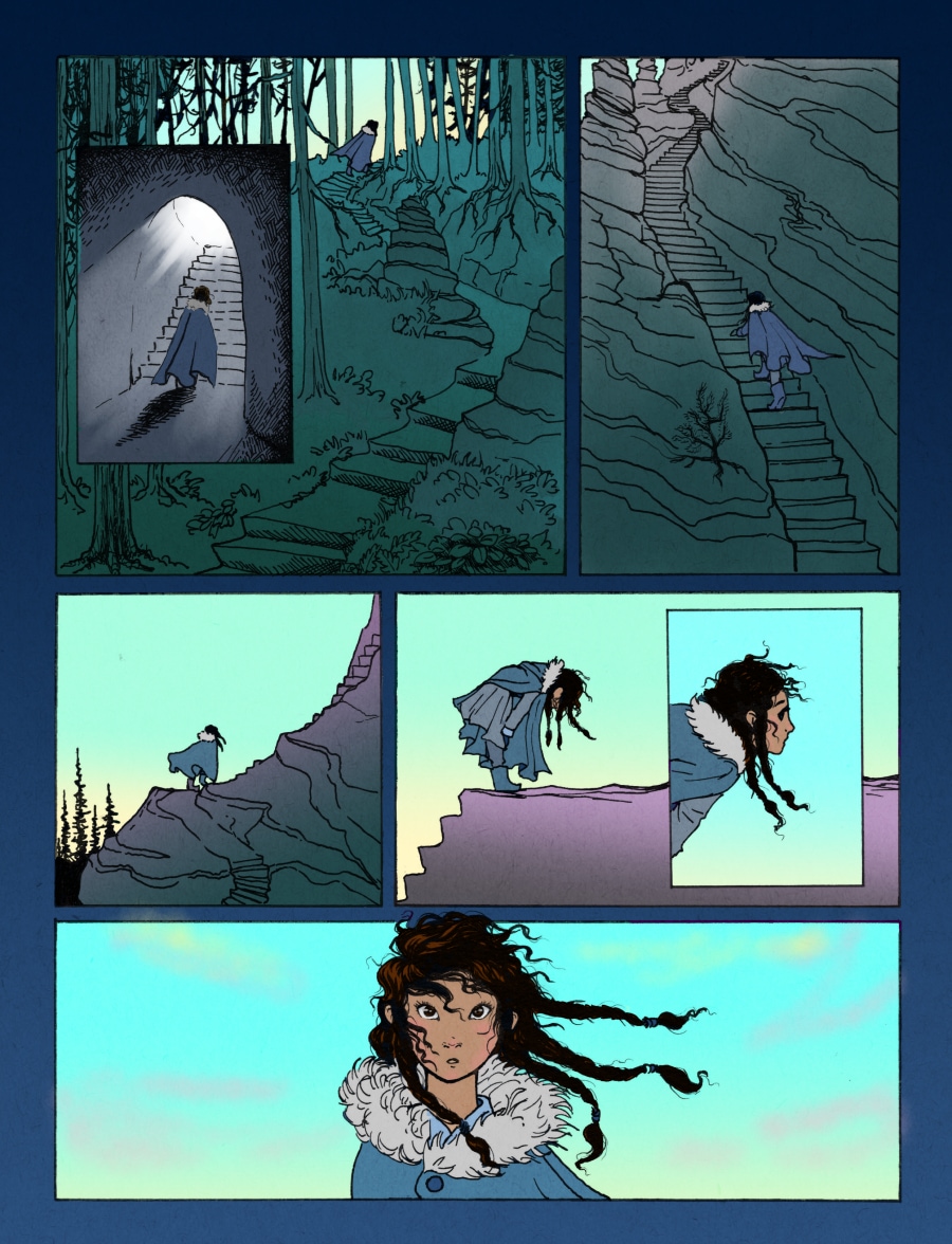 These backgrounds are breath taking and I love the way you drew the braids in her hair