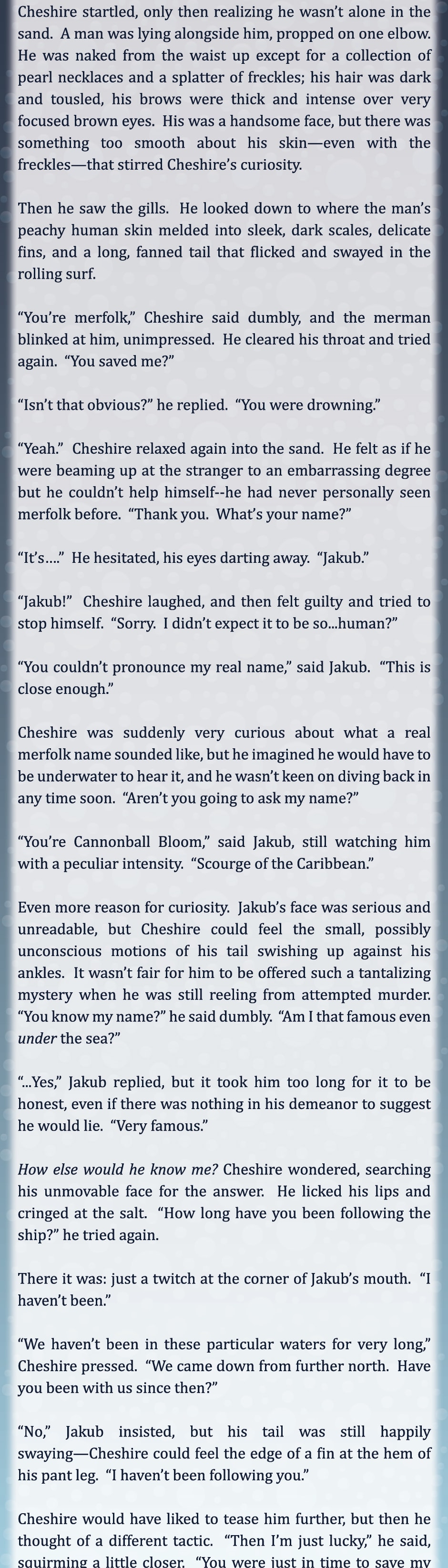 Ack! I love mer-Jakub. Still pining for Chesh no matter the AU :)