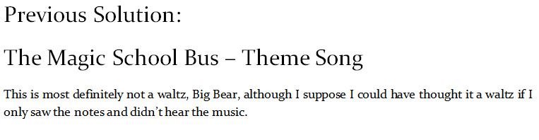 This way this will be intended to work is that each update, I'll upload some notes. It'll be your job to try to recognize the tune. If you can't hum it out, try playing it on an instrument at home, or use an online keyboard. If you can't read sheet music, sorry :[