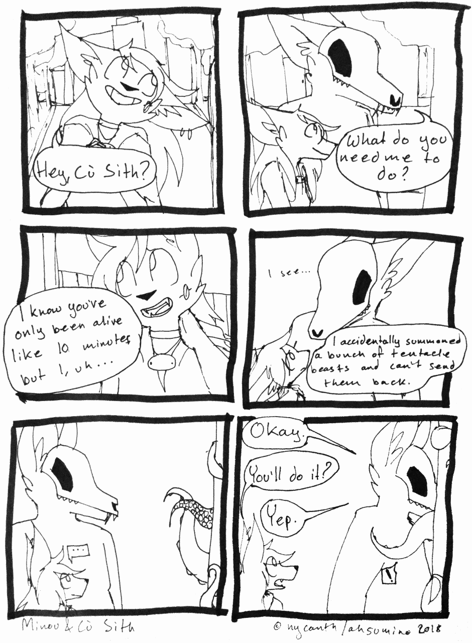 Sorry about missing the Tuesday update, I was sick this week. Have some bonus art!