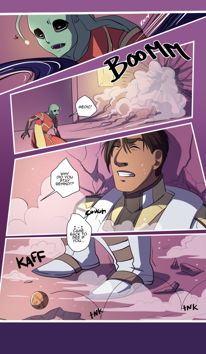 A medic and his team encounter a lone scavenger foraging in the ruins. After an attack on the mission party, the pair find themselves alone and drawn to each other, despite the masks they each wear...