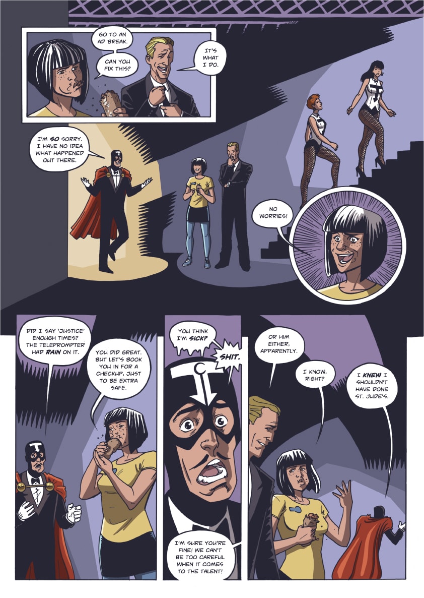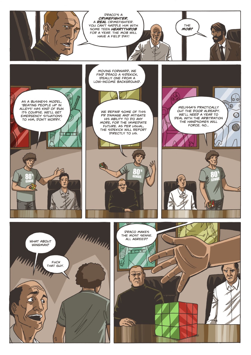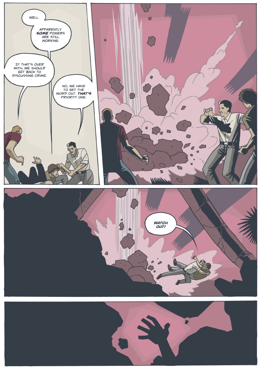 As the city of Delphi recovers in the aftermath of Professor Worldcrusher's vicious attack, the Handsome Family works to solve an ongoing mystery. The corporate behemoth Absolute Hero will find itself a victim of its own success...and everything will change.