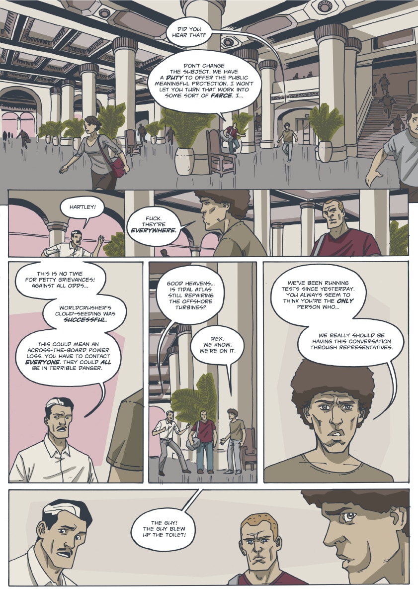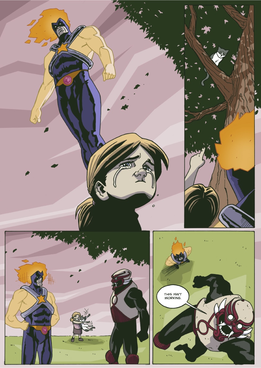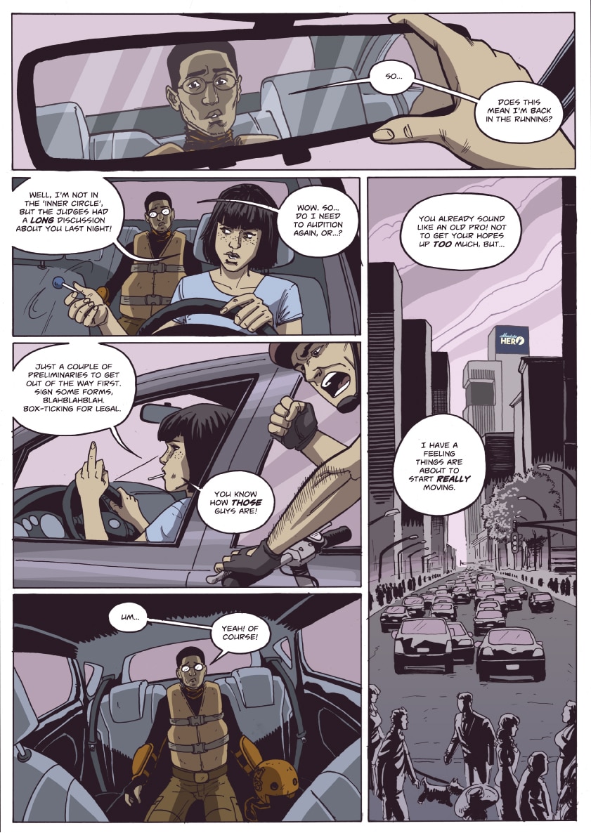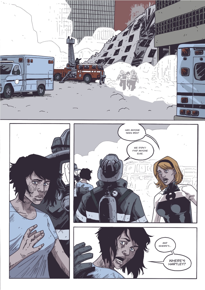 As the city of Delphi recovers in the aftermath of Professor Worldcrusher's vicious attack, the Handsome Family works to solve an ongoing mystery. The corporate behemoth Absolute Hero will find itself a victim of its own success...and everything will change.