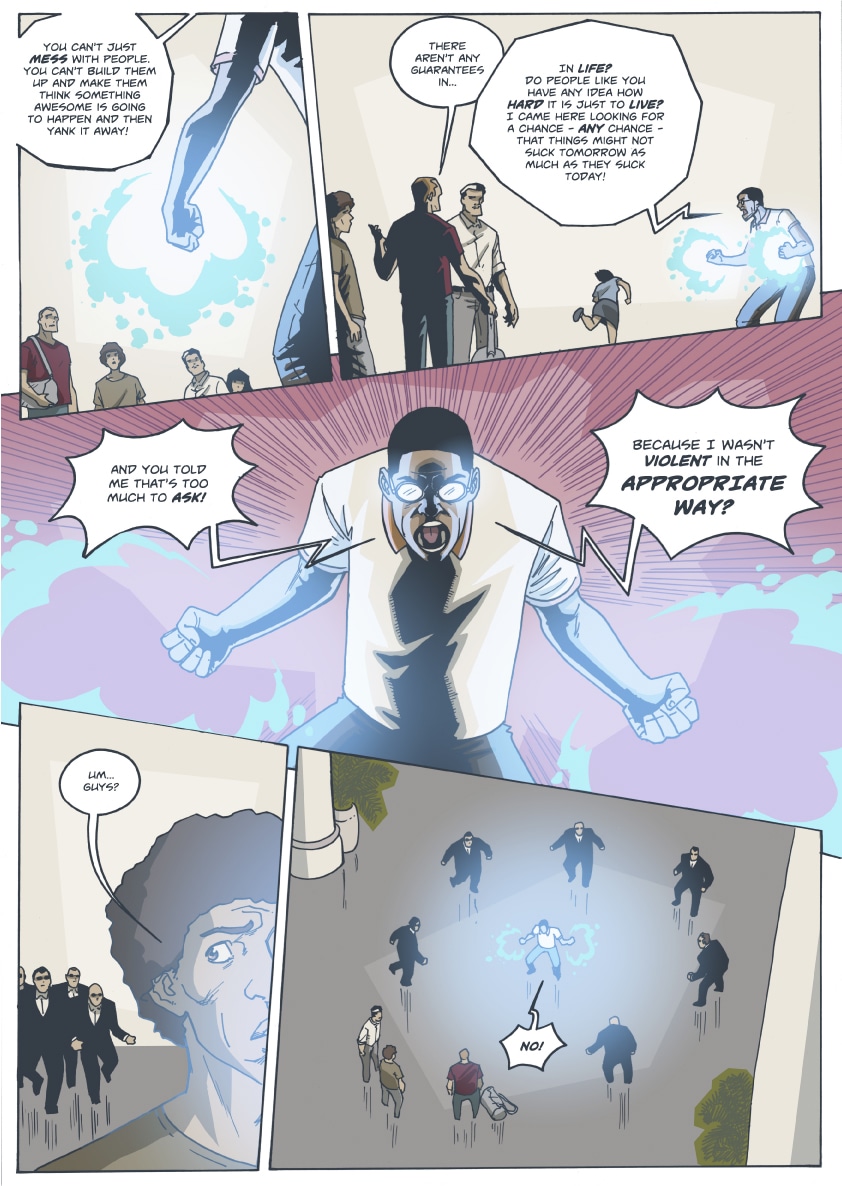 Read Scions. There are super-fights. There are arguments. There are heartwarming interludes between endless chasms of existential despair. You'll like it.