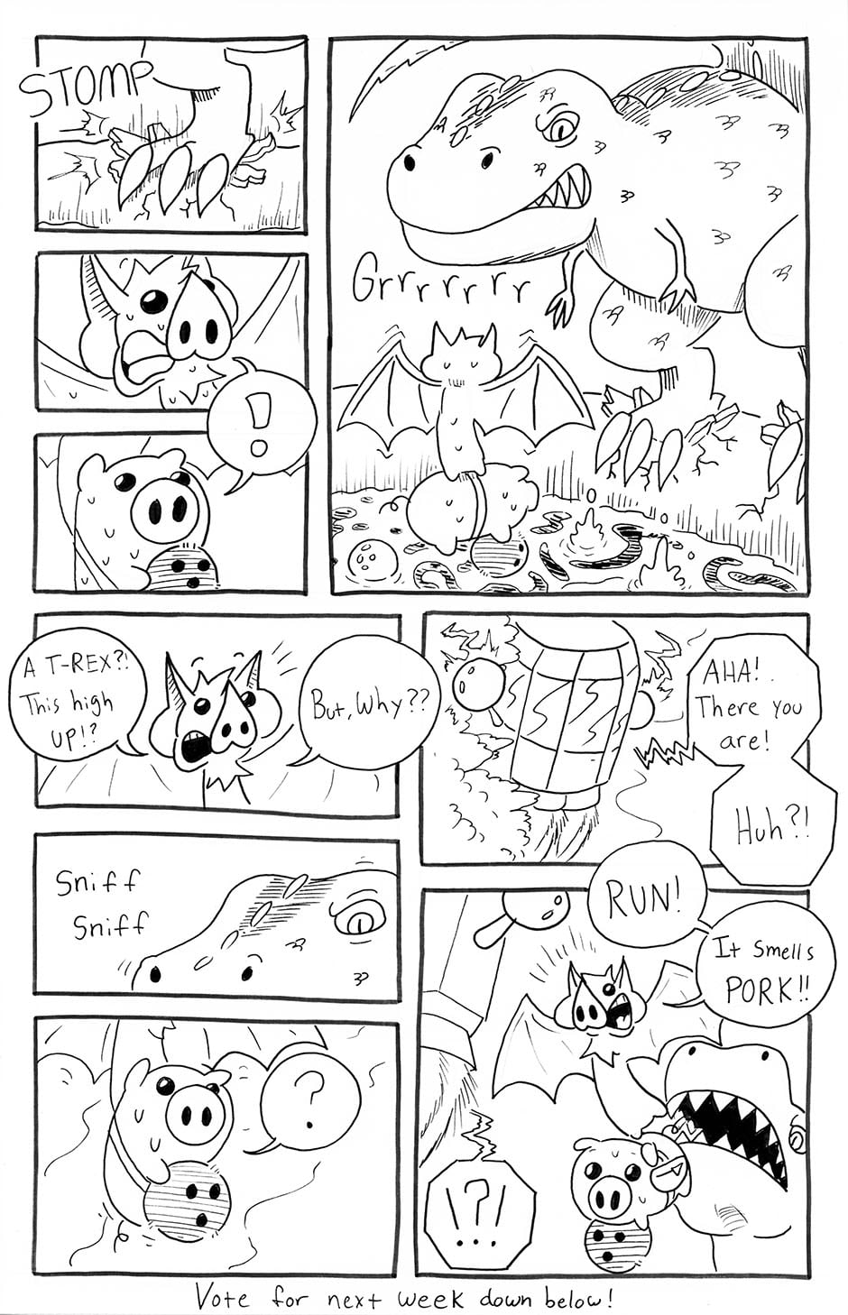 PigQuest follows the unique adventures of Leopold the Pig! Equipped with his fannypack, he is ready to dive headlong into action. But he needs YOUR help!! Every now and again, Leopold will rely on your choices that will progress his adventure and the story! Check the description with each upload to see how to help with Leopolds adventures! Updates every Friday.