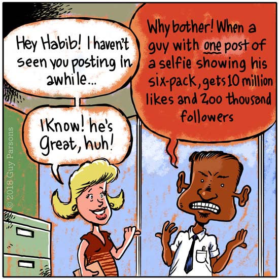 Things occur to me, sometimes they're even funny, there mostly about office work , but occasionally they're about nothing in particular. Its a single panel format. Don't tell anyone about it, the two followers I have now are too much of a burden as it is.