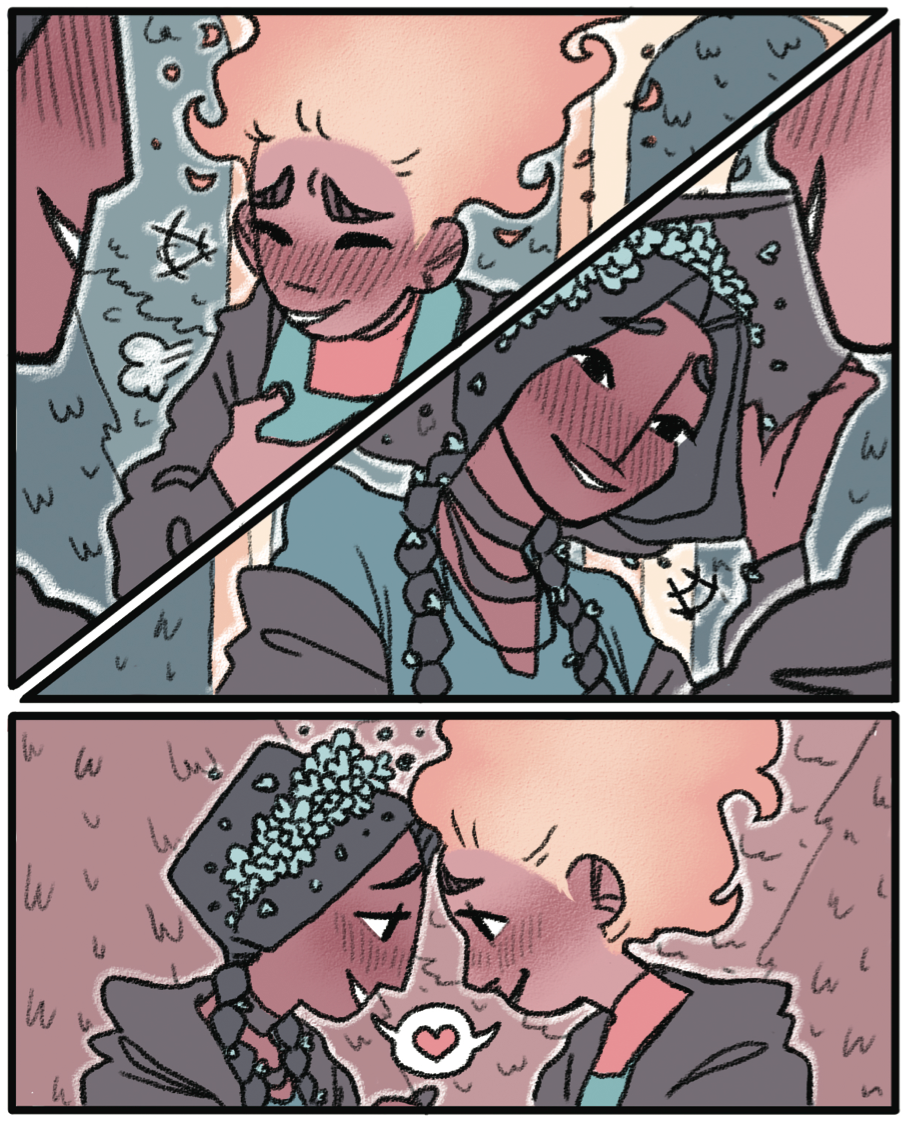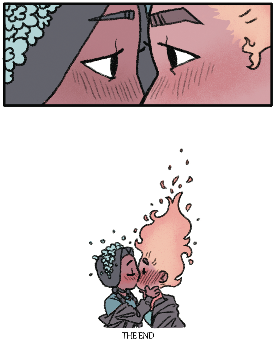Tinder is an LGBTQ+ comic about a witch who falls for another witch in her program. There's a catch though, our main character finds that she's having trouble not exposing her crush because every time she sees her crush, her hair sets on fire and it only seems to be getting worse. What will she do?