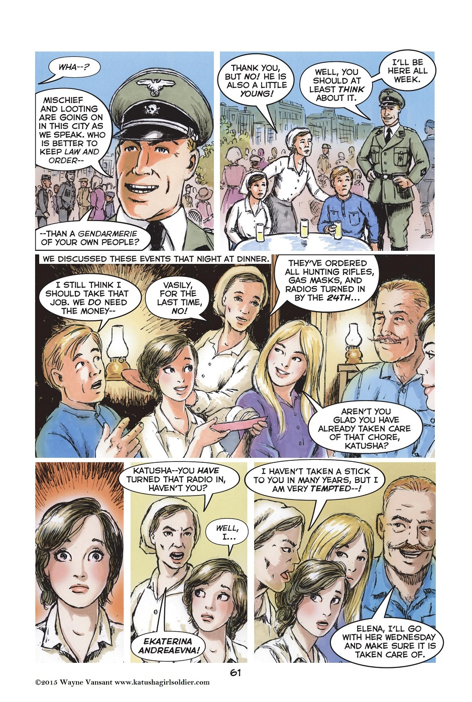 The first KATUSHA graphic novel, EDGE OF DARKNESS, is complete in 180 full color pages. Two more volumes, THE SHAKING OF THE EARTH and ON WINGS OF THUNDER, will follow, carrying her to the Brandenburg Gates and the Reichstag.