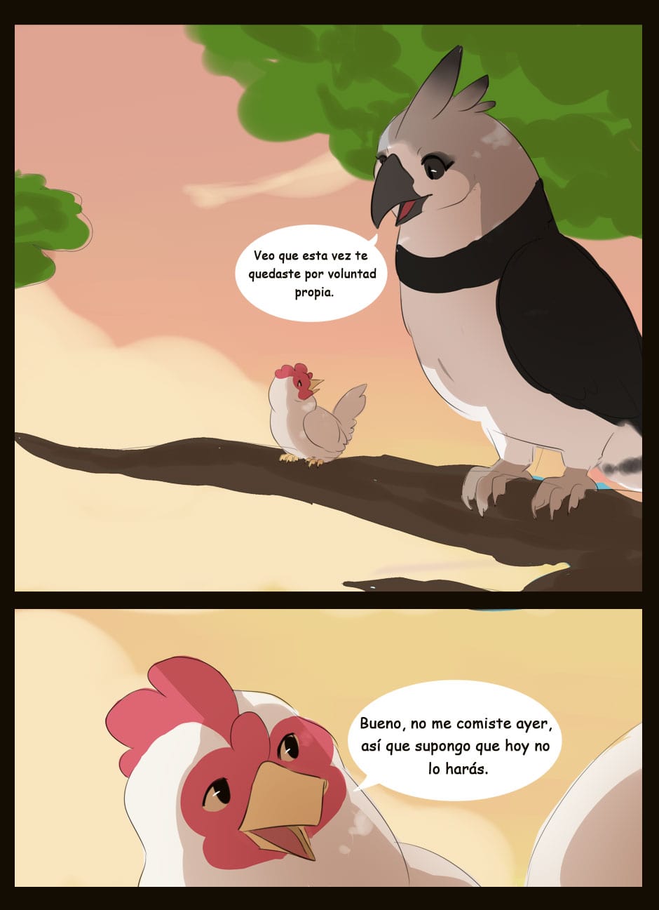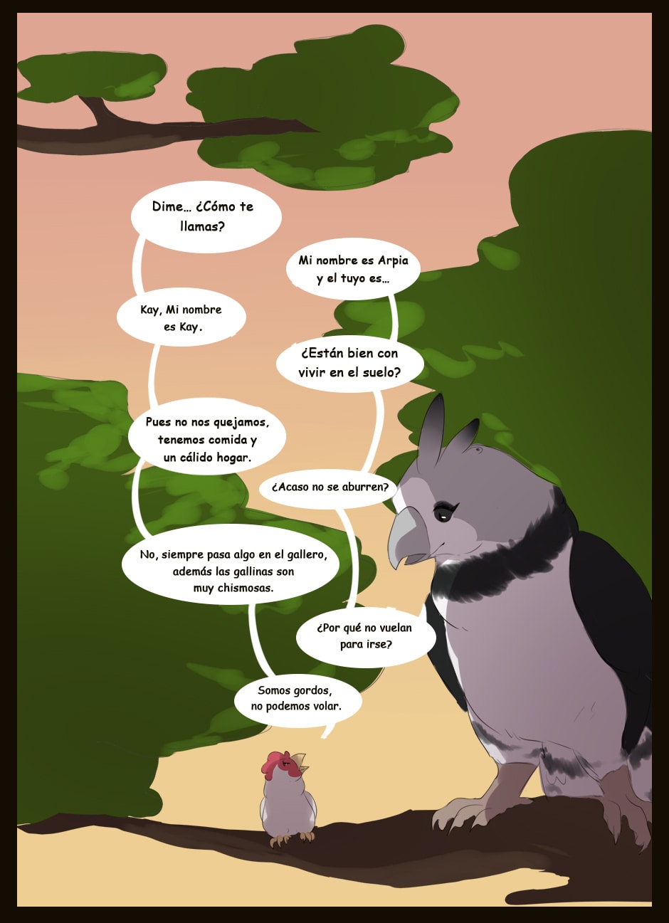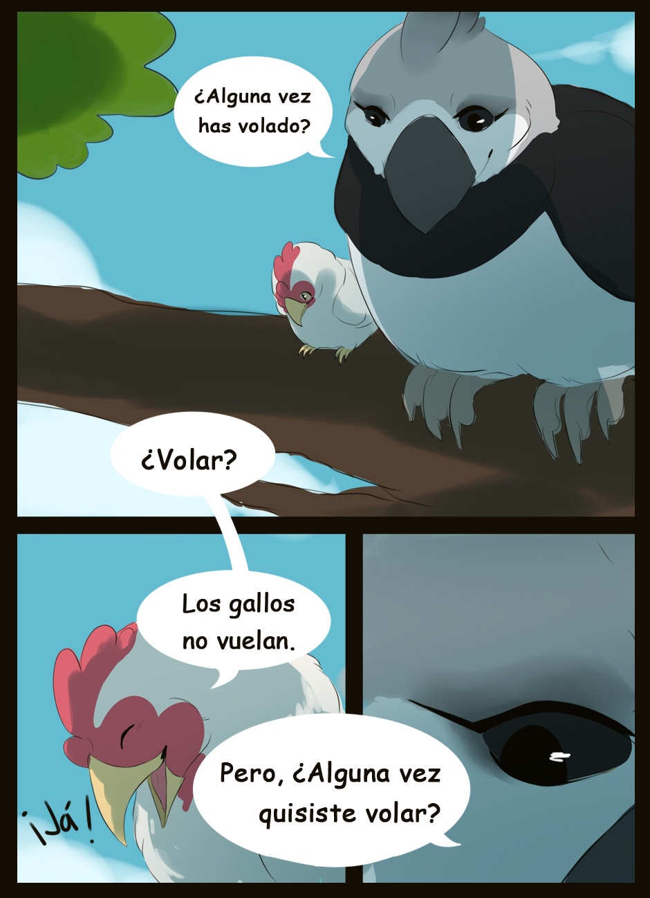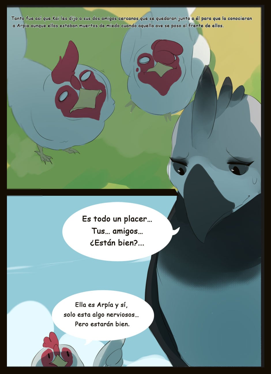¡Hola! Te está quedando muy bien tu proyecto, dibujas bien. ¿Puedo hacerte algunas recomendaciones para mejorar? Se te da muy bien el dibujo, pero quizás deberías prestar más atención al texto. Estaría bien buscar una fuente más atractiva para cómic, por supuesto, vigilar siempre las faltas, y también fijarse en algunos detalles de coherencia. Por ejemplo, en el primer capítulo se inicia con un narrador en tercera persona, pero se pasa casi inmediatamente a uno en primera. Eso descoloca un poco a tu lector. Espero ayudar. ¡Suerte!