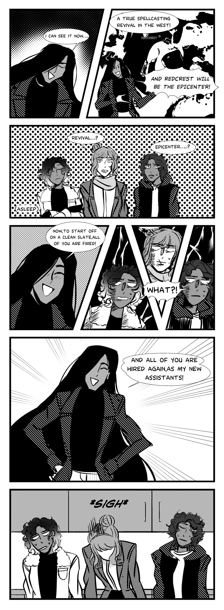 Surprise change in style! Sorry for being so flip-floppy with how i present things,im trying to figure out the most efficient way i can get these pages out long term,and screentones make things much easier. I also feel like im not good enough with color to give my ideas any justice,it all just ends up looking like a big oversaturated mess when i end up posting it :( Lets hope for better odds in the future. Thank you for supporting my work!