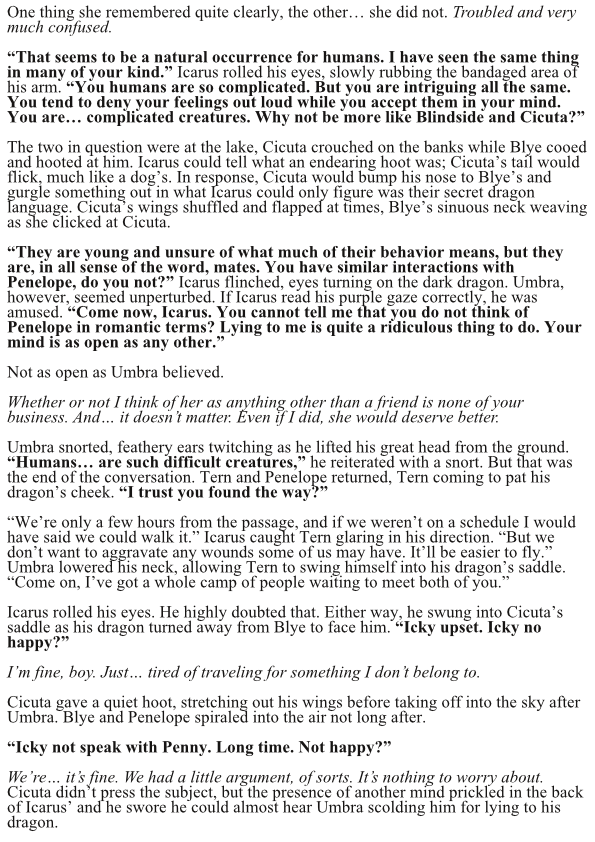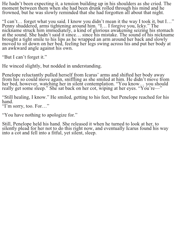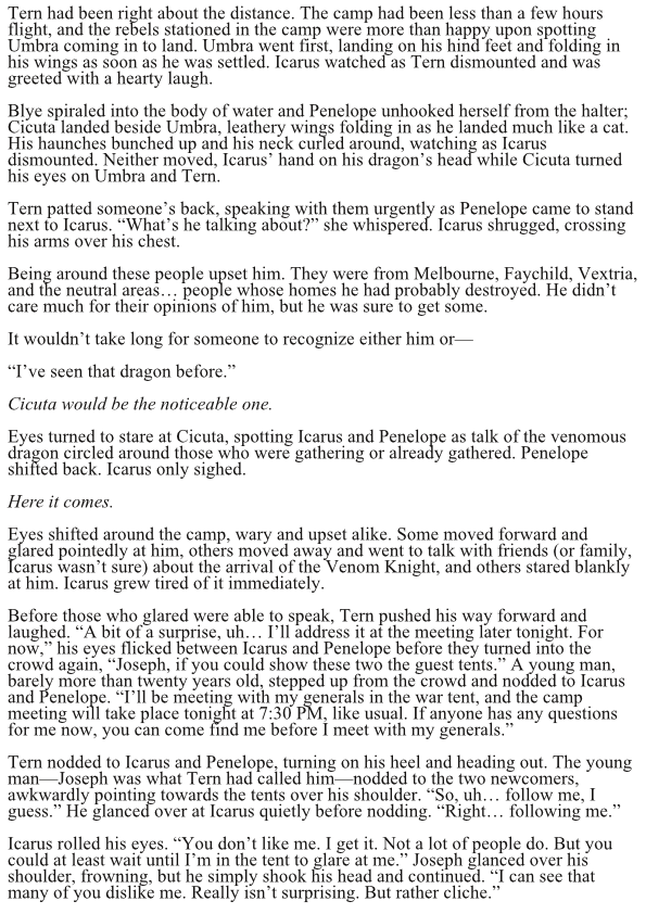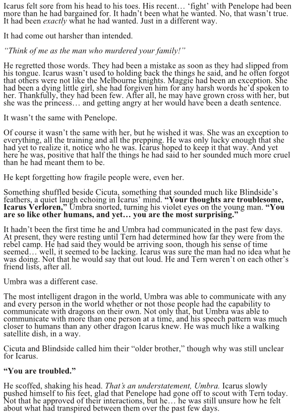 Before the Great Tragedy, before the creation of the Vessels, before the Realms cut themselves off from the Neutral Zones, the desolation of the world came at the hands of knights on the backs of dragons. Icarus Verloren is one of these knights, although banished from the kingdom of Melbourne. Simply hoping to return home to live out the rest of his life, Icarus meets Penelope Itzel—a runaway noble from Faychild—and things start to go awry. From one village to the next, Icarus and Penelope are wrapped up in a rebellion and a war brewing on the horizon.