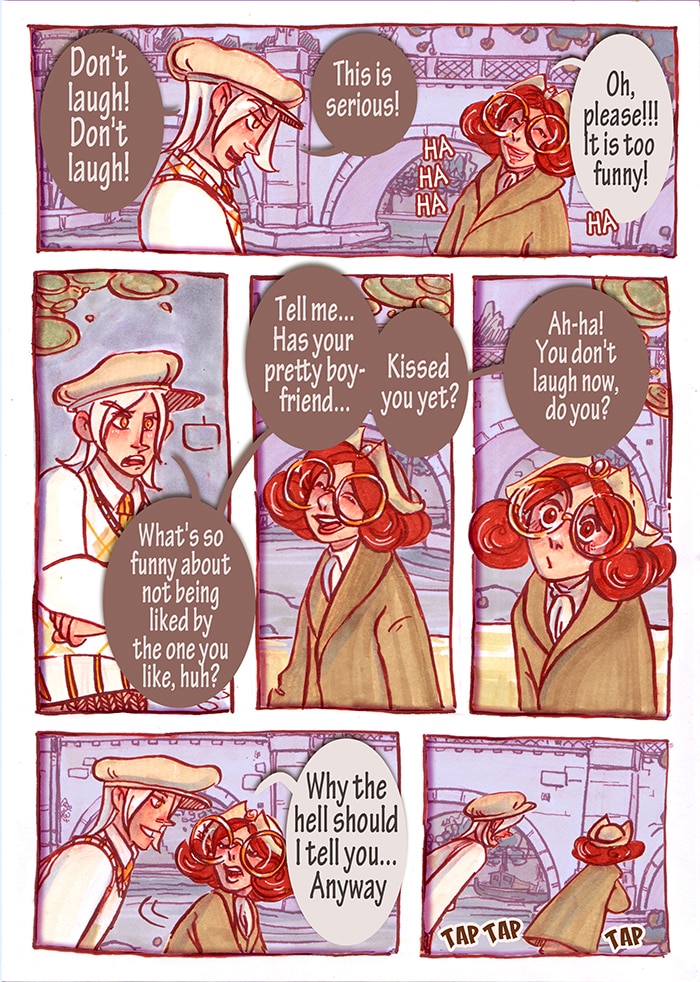 It's quite simple: one didn't tell the truth about the flower, and other is a superficial jerk. He is insistent of her belonging with him, and she tries to ignore her own feelings because of arrogance. They have a more chaotic relationship than Wes and Kes in The Pirate Balthasar series. At least they aren't as toxic as Ross and Rachel from Friends. I hate Ross and Rachel.