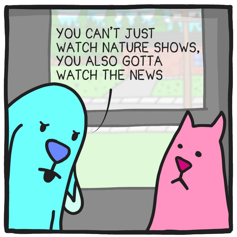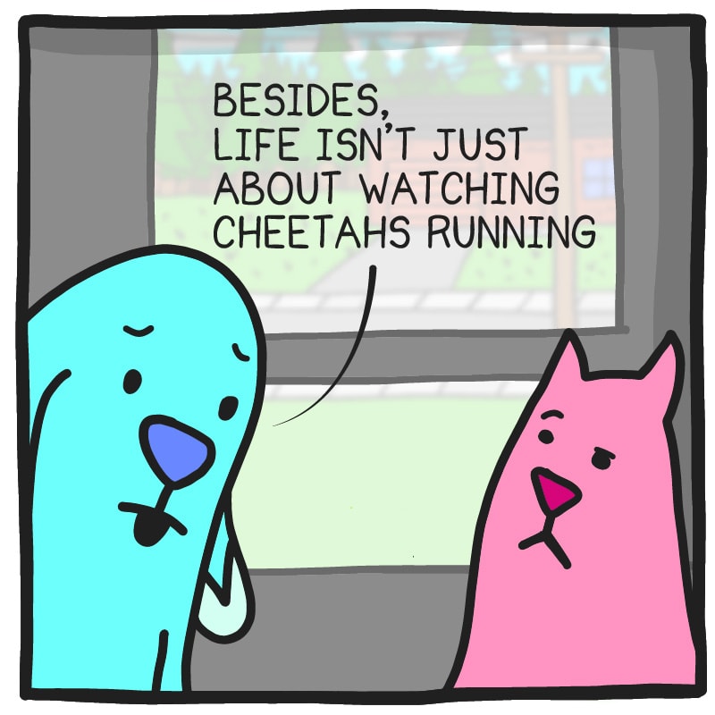 A comic about the life of a dog and a cat and probably a bunch of other characters that are friends of these two but they refuse to tell me when they're going to show up, then suddenly they are in my house looking for dinner and here I am totally unprepared.