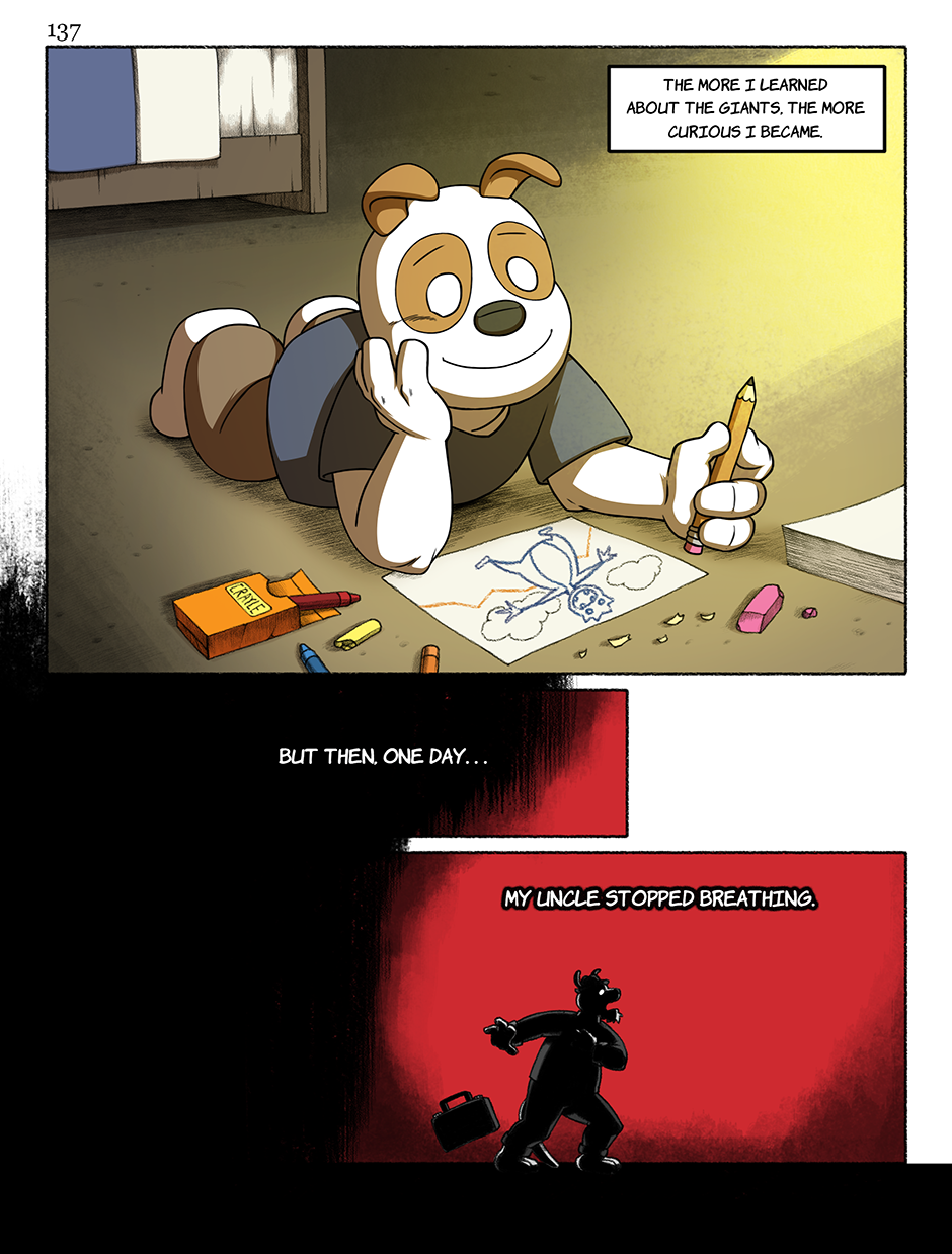 In The Lion's Den takes place in an alternate Earth where anthropomorphic animals called “critters”, coexist with the primitive “Giants”. The Critters live in a land of their own, forming social groups and often gangs due to conflicts between one kin to another. Many of the Critters also venture out into The Land of the Giants, reasons for this ranging from opportunism, to feeling isolated from their own kind, or simply out of curiosity. Subsequently, many end up forming special bonds with The Giants.