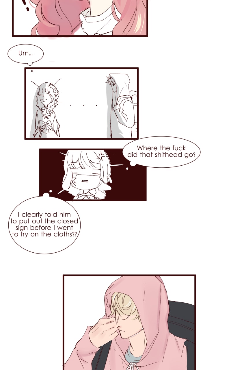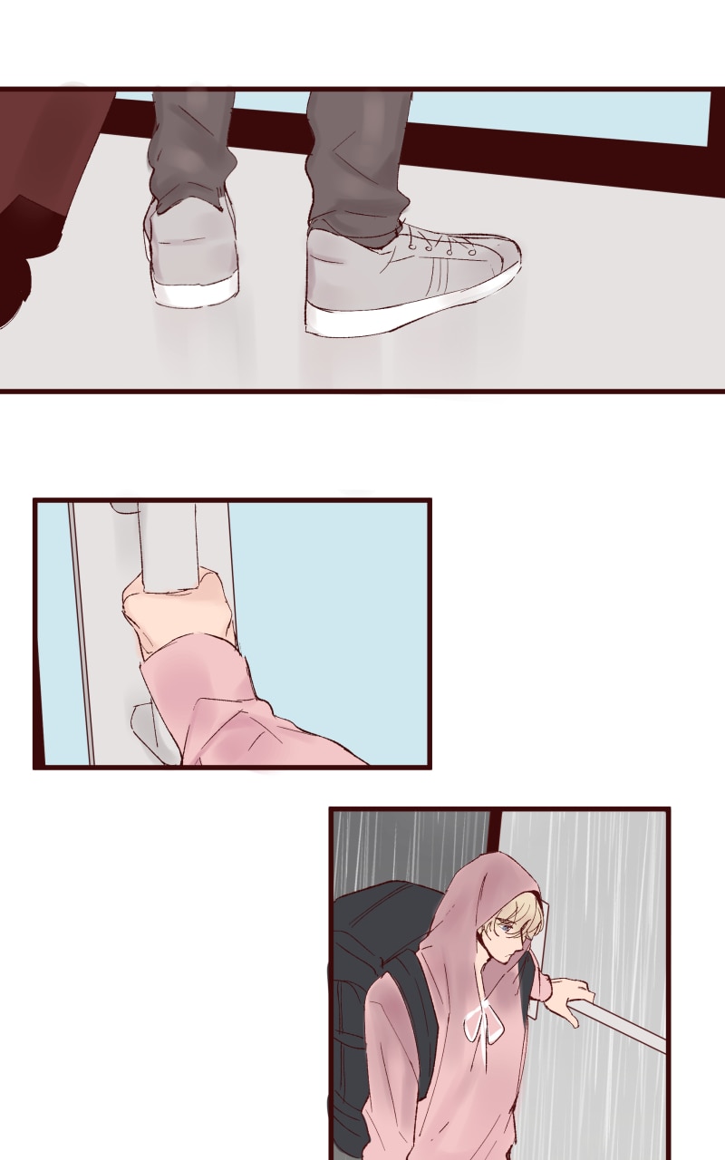 First meeting AND their clothes are coordinated 🤔 Destiny! That last panel is so cute! I wouldn't be able to kick him out.
