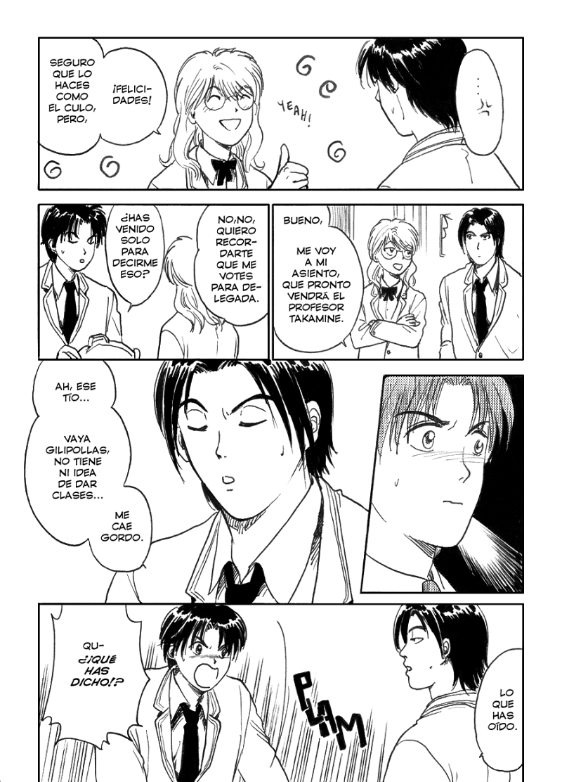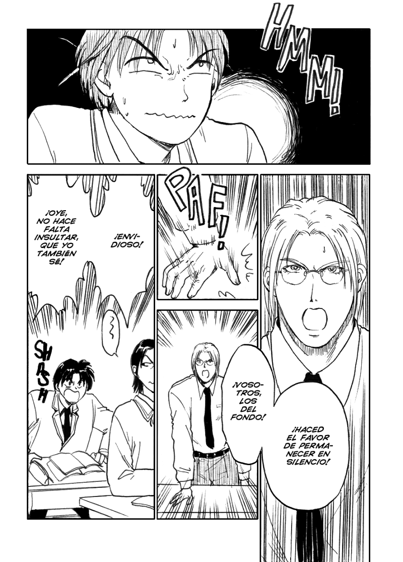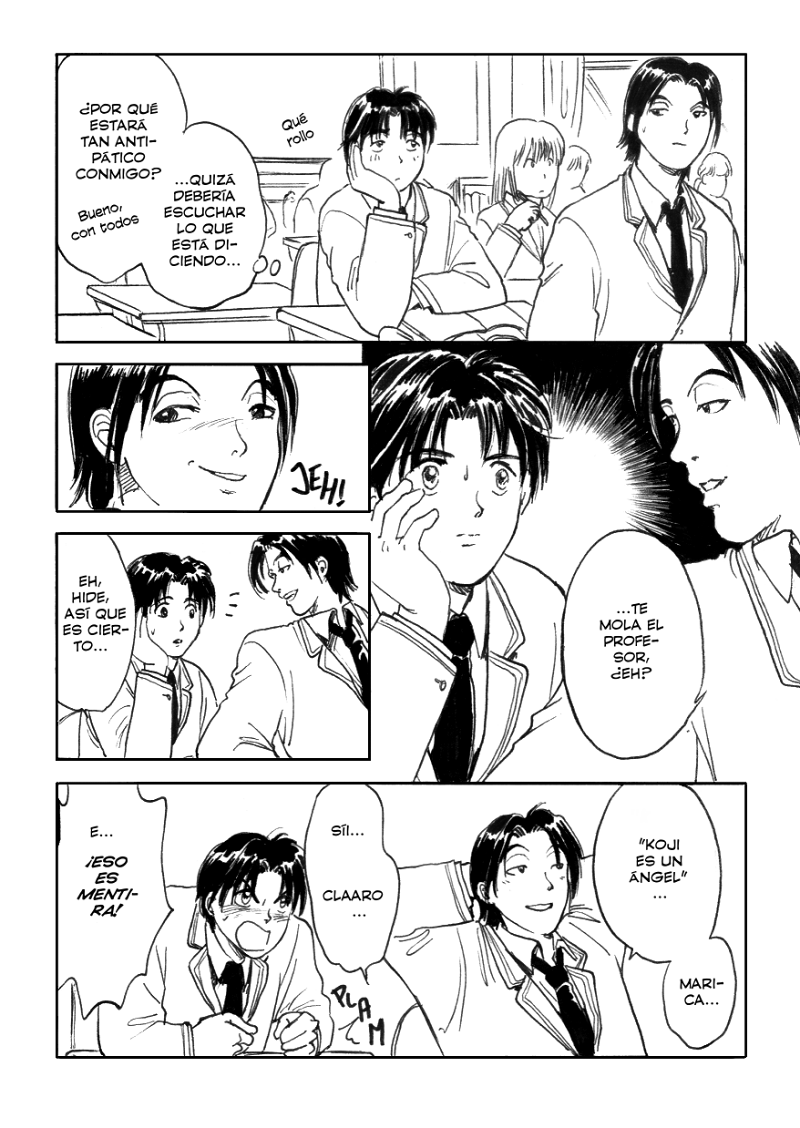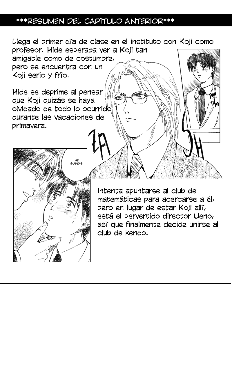 ¡Empieza el capítulo 7! En este capítulo seguiremos viendo más enredos de Hide en el instituto y veremos qué intentará hacer Hide en respuesta al comportamiento serio de Koji. Este chico con mala uva es Takeo, uno de los amigos de Hideyuki. No hace falta que os quedéis con su nombre, con su cara vale :P