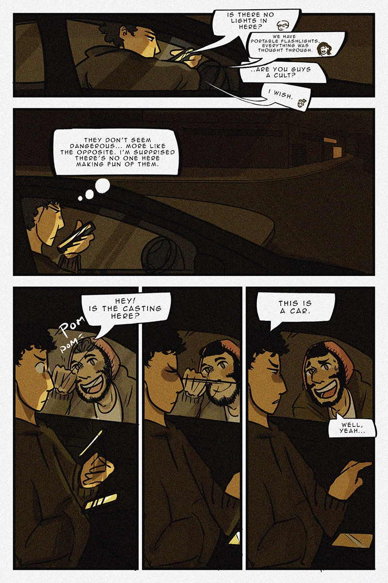 [pointing at car] Is this a casting? Come say hi on social media! We're from Spain but we speak English too :) Twitter: twitter.com/SPRN00BS Tumblr: sprn00bscomic.tumblr.com/ Facebook: www.facebook.com/sprn00bs/ Ask: ask.fm/SPRN00BS