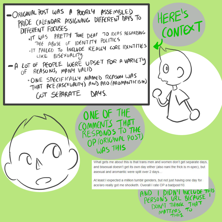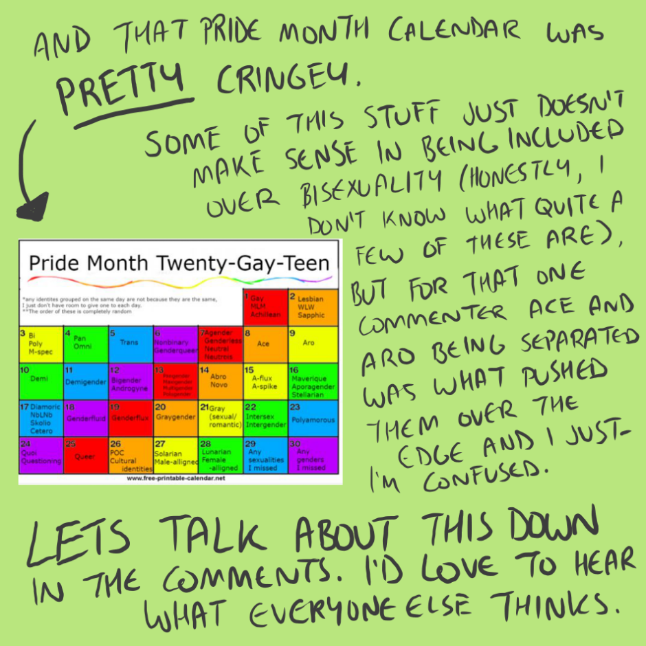 This is why im so tired of the lgbt community, they think they can decide who is part or who isnt or talk about other sexualities they know nothing about just because they are in the community. Im asexual and im so tired of Lgbt+ peolpe telling me that i shouldnt be one of them, thats why i no longer consider myself one of that community and i preffer SAGA (Sexuality And Gender Acceptance)
