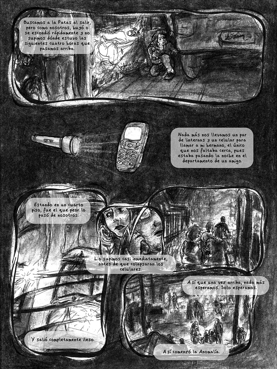 Autobiographical graphic novel set in Chile's 2010 earthquake, originally published in 2012 by Libros de Nébula Ediciones. This is a 2017 personal re-edition, I changed the fonts and some details in the text. "Anomalía" (Anomaly) is only available in spanish, but I might translate it to English in the future.