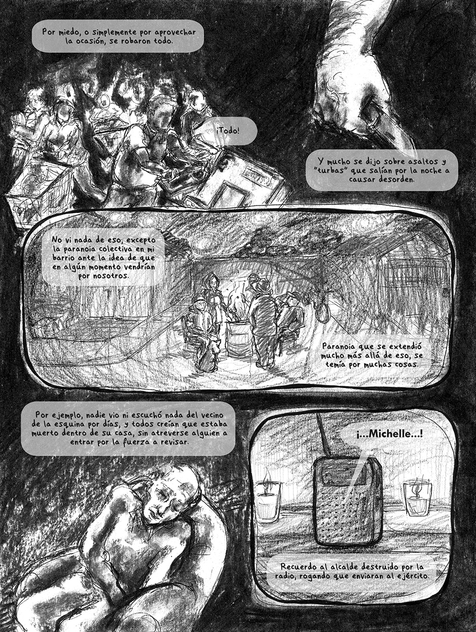 #chaos #anxiety #earthquake #tsunami #mass_hysteria #collective_panic #history #natural_disaster #neighborhood #neighbors #hope #daily_life #espaol #spanish #chile #graphite #charcoal #ink #drawing_pen