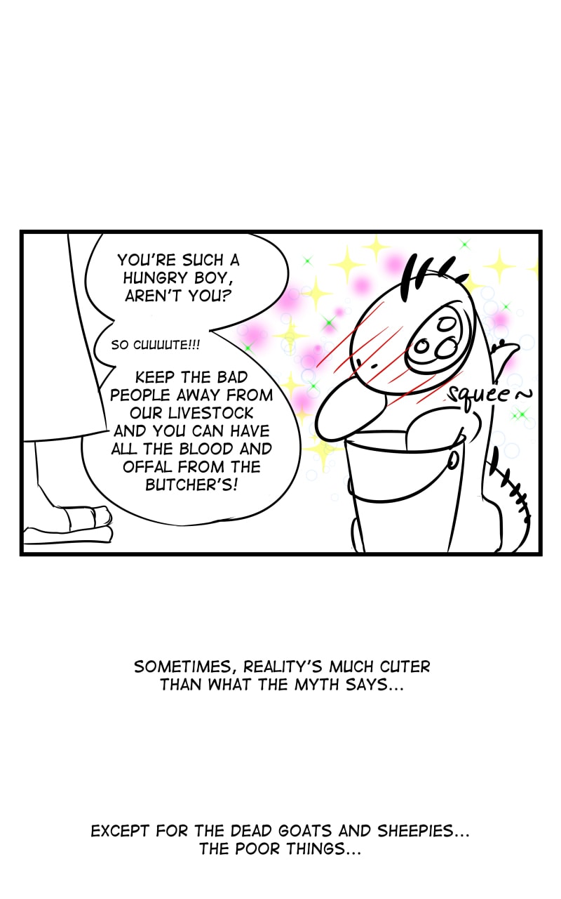 Kami's Lesson for the Day: Good deeds deserve rewards. Preferably edible ones. So go forth and do good. Sorry, late. Creature from a reader suggestion. Keep them coming, people! Thank'ee...