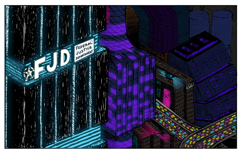 Nice neon effects on the city! And like the details on her desk too, intrigued by the tech.