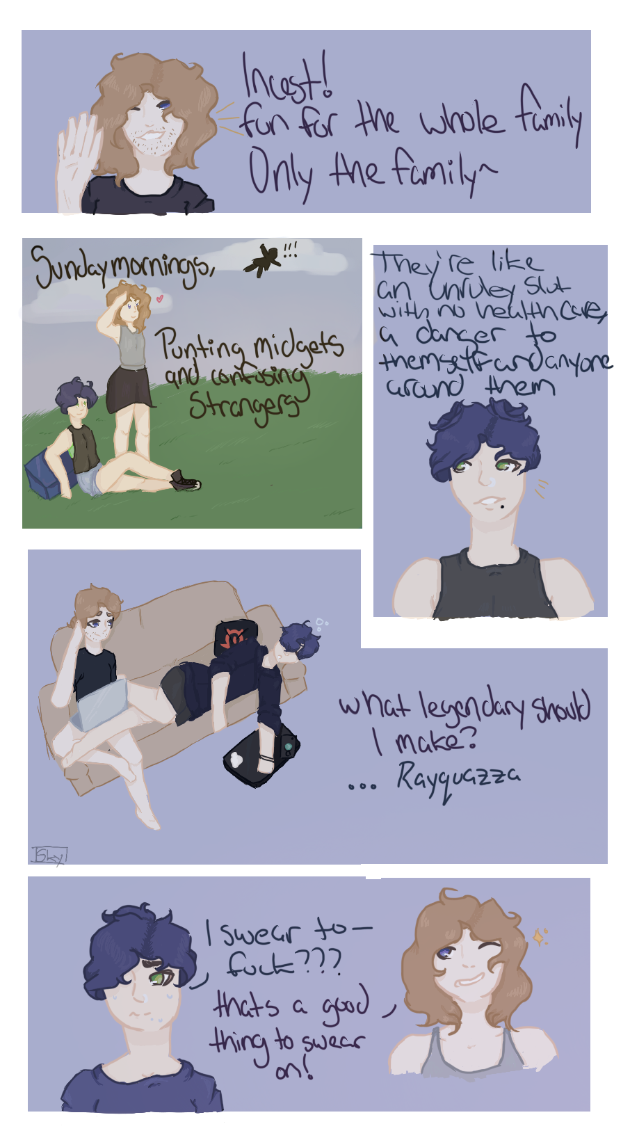 just a random slice of life sort of thing where your artist will either drawing random things with characters, things based off of the chaos said in my own server and based off of my own life!