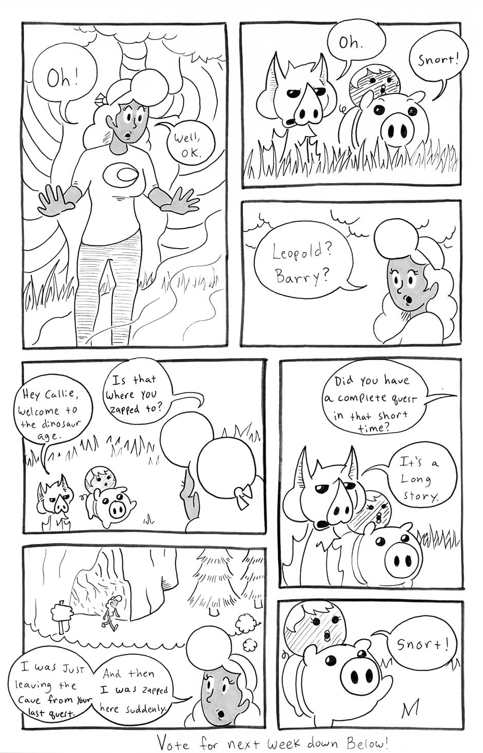PigQuest follows the unique adventures of Leopold the Pig! Equipped with his fannypack, he is ready to dive headlong into action. But he needs YOUR help!! Every now and again, Leopold will rely on your choices that will progress his adventure and the story! Check the description with each upload to see how to help with Leopolds adventures! Updates every Friday.