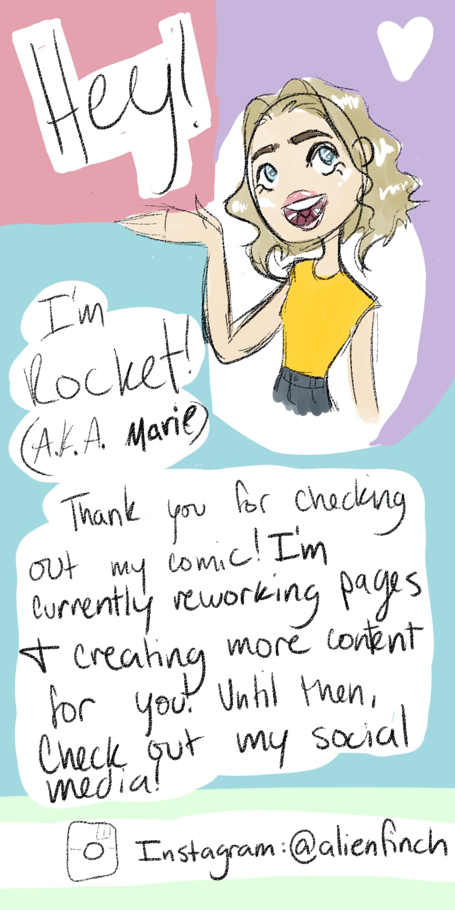 Hello! Thank you for making this wonderful content! I love it. :) Unfrotunetly, I am 12, and I have no social media, otherwise I would check you out, but my parents are cruel. T-T I think this comic is great and to be honest, I could probably nevery come up with something as ingenious as this.