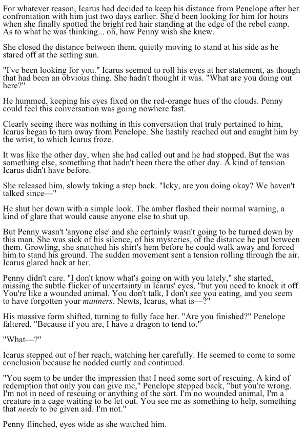 Before the Great Tragedy, before the creation of the Vessels, before the Realms cut themselves off from the Neutral Zones, the desolation of the world came at the hands of knights on the backs of dragons. Icarus Verloren is one of these knights, although banished from the kingdom of Melbourne. Simply hoping to return home to live out the rest of his life, Icarus meets Penelope Itzel—a runaway noble from Faychild—and things start to go awry. From one village to the next, Icarus and Penelope are wrapped up in a rebellion and a war brewing on the horizon.