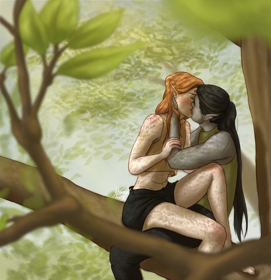 This is not canon. Some gay shit for pride month! So I had "Gelly and Decian sittin' in a tree, K-I-S-S-I-N-G" stuck in my head all day yesterday.