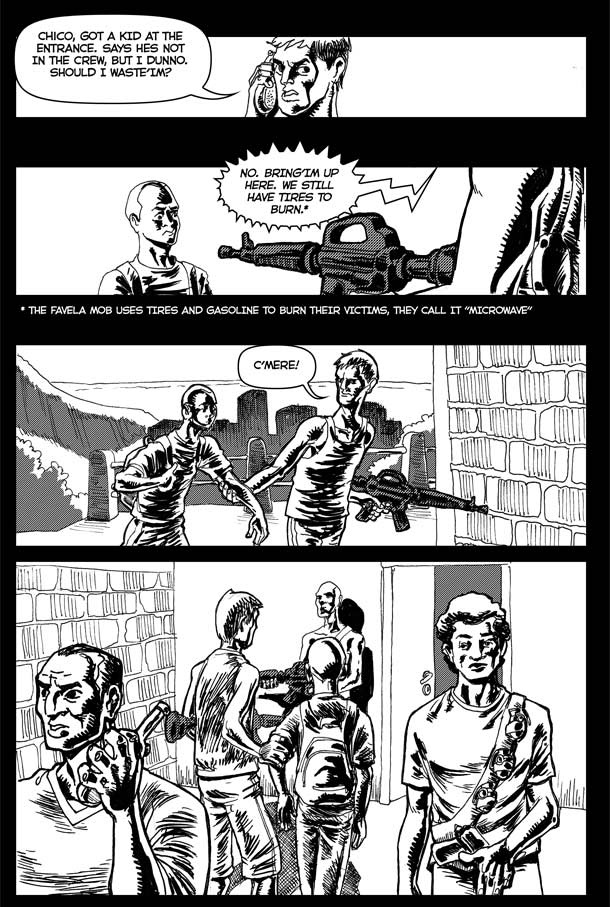 Sebastian comes home only to find it occupied by a rival favela's gang. Worst, they think they were a part of it! He will only survive if they find him a use...