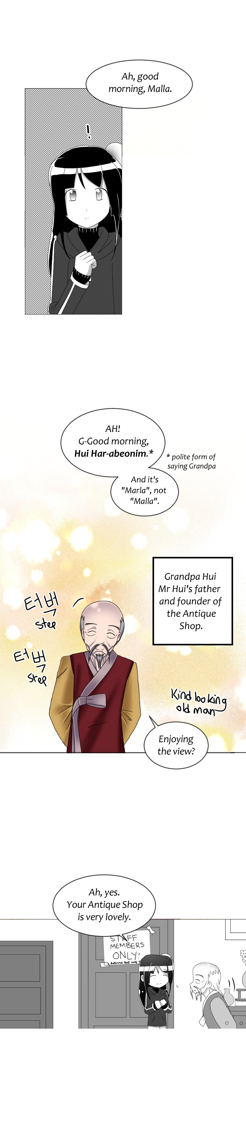 Marla Baek is a young teenage orphan with no place to go until one day, in answer to her prayers, Yahuwah (the LORD) sends her to work at an Antique Shop for the Hui family in the village Hye-Byun: a thriving town by the sea and mountains where a lot of her old friends have already settled in.